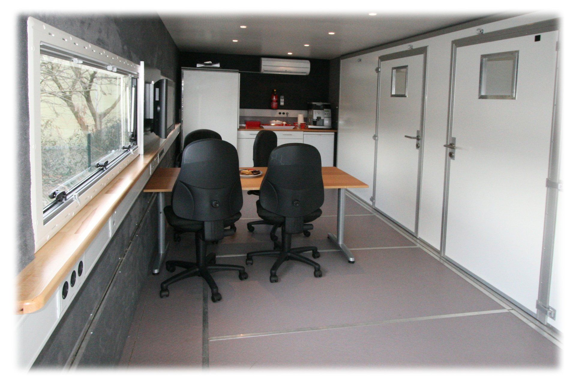 Möblierung / Wir richten das Mobil nach Ihren Wünschen ein - eine Kaffee-Ecke mit Kühlschrank ist fest eingebaut.