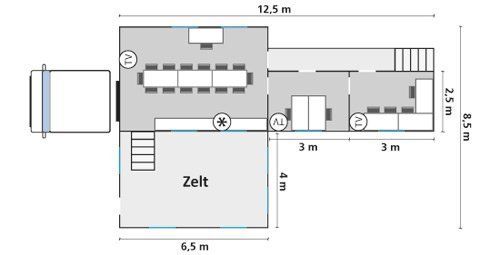 48 Quadratmeter Büro mit oder ohne 50 qdm Zelt